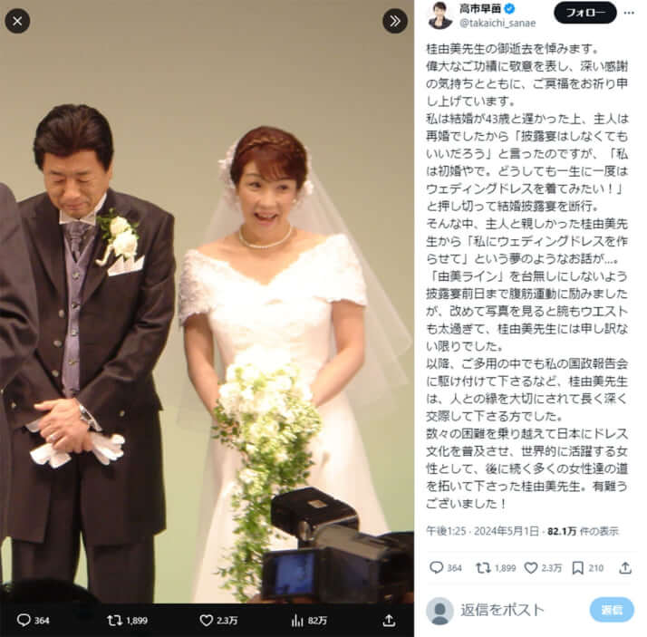 当時、看病に寄り添っていたのは高市早苗さんでした。